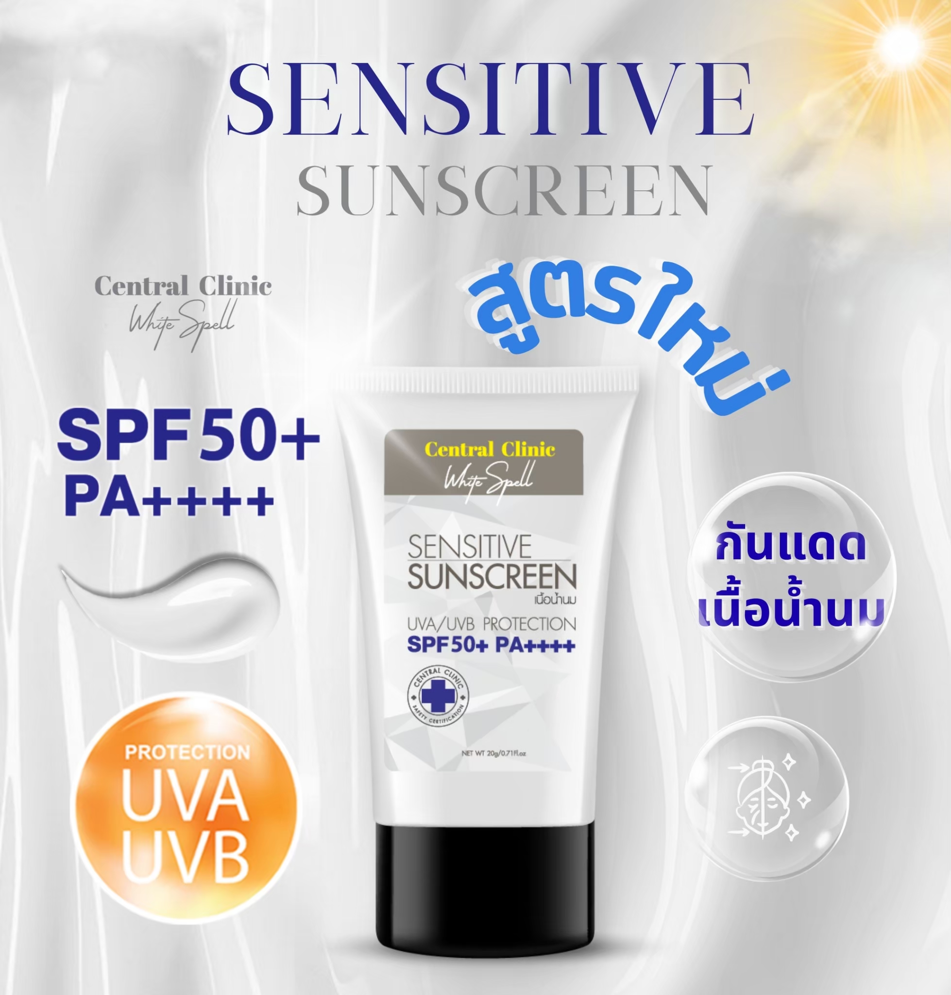 - Titanuim Dioxide: ป้องกันได้ทั้ง UVA/UVB น้ำหนักเบา ไม่มีส่วนผสมของน้ำมัน ไม่อุดตันรูขุมขน สามารถกระจายตัวได้ง่ายและสมบูรณ์ มีอนุภาคเล็กขนาดนาโน จึงไม่ทำให้ผิววอก.